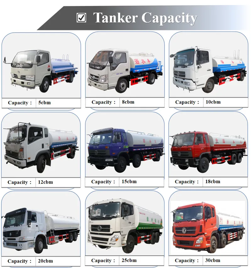 DepóSito de agua se produce la carretilla de transporte y distribucióN de agua potable e industrial, pulverizacióN y lavado de calles y túNeles, polvo y control ambiental y lucha contra incendios fines.A fin de lograr las diferentes operaciones, cada camióN tanque de agua podríA estar equipado con diversos componentes para darse cuenta de funcióN diferente.